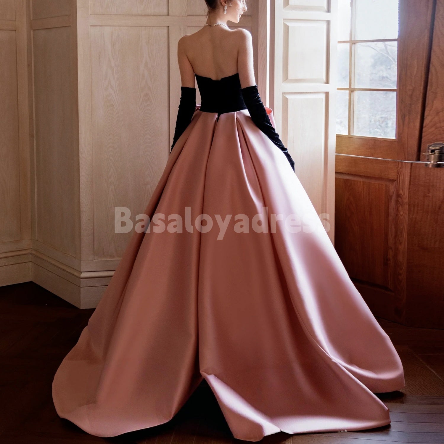 This elegant pink and black bow princess ball gown is a showstopper! Ideal for birthday parties, engagements, proms or vocal performances. The combination of pink and black creates a striking contrast. Paired with black gloves, it oozes sophistication and makes you feel like a true princess on any special occasion.