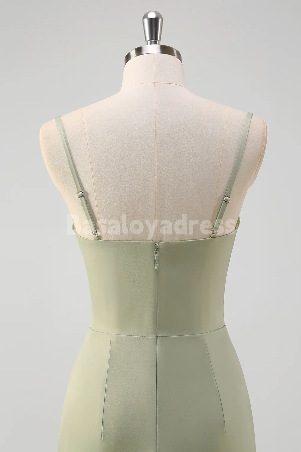 BDES00166 Sage Corset Mermaid Prom Dress Maxi Dress with Pleats and Slit