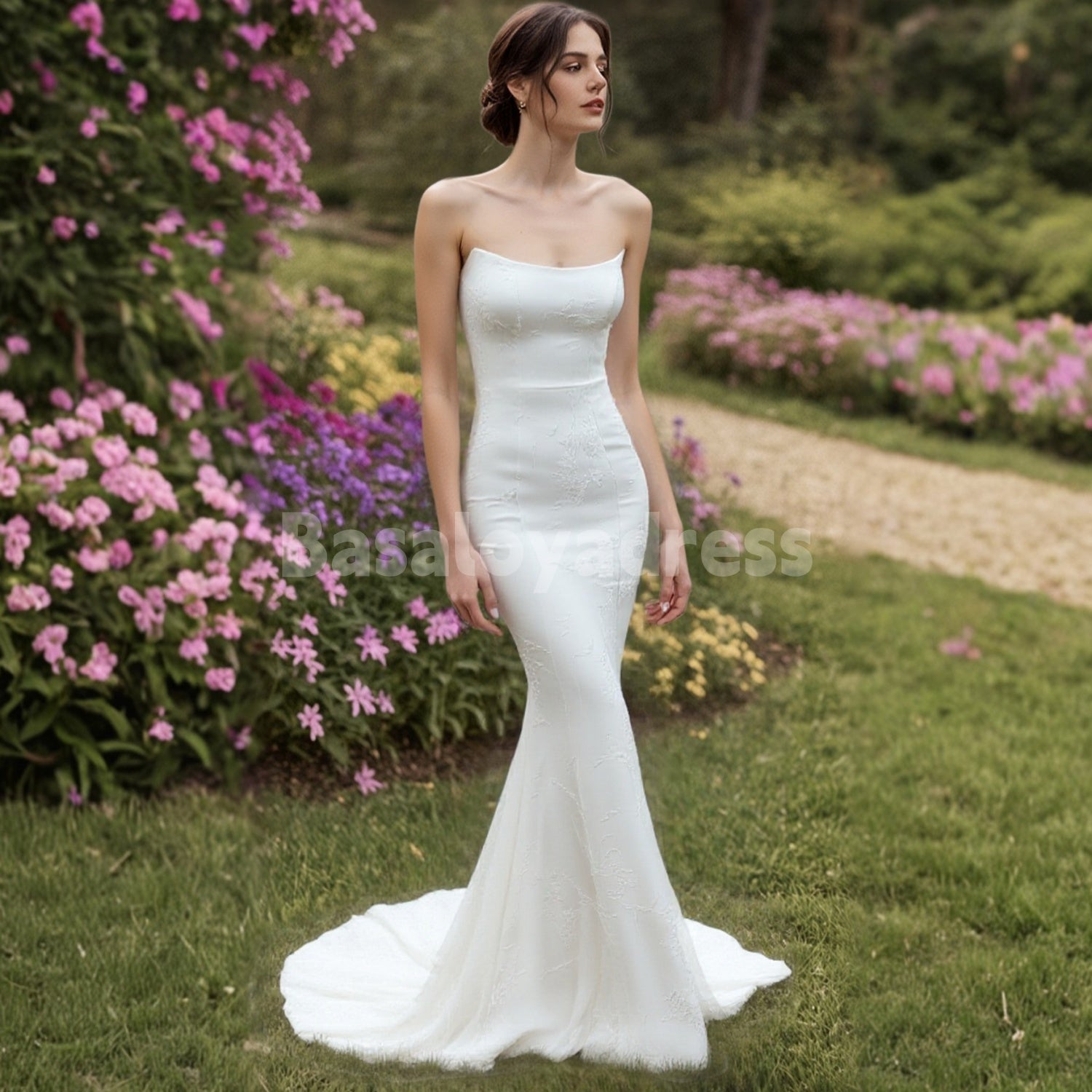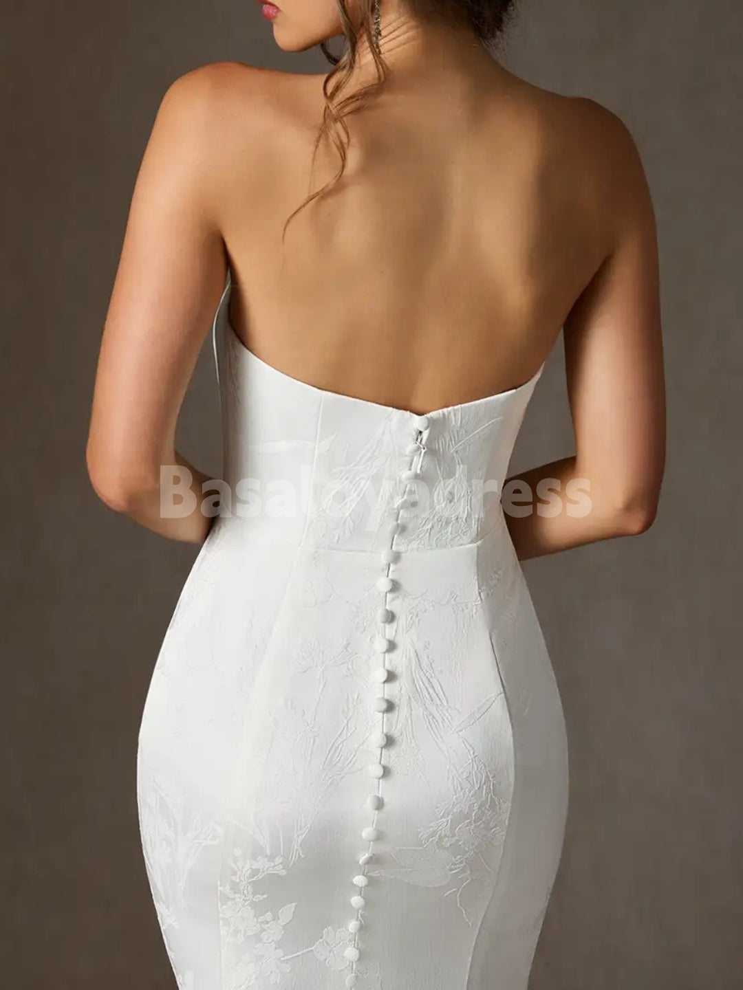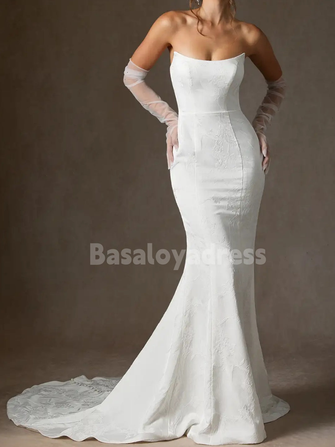 BWD00044 Mermaid Strapless Floral Jacquard Wedding Dress with Tulle and Diamond Gloves
